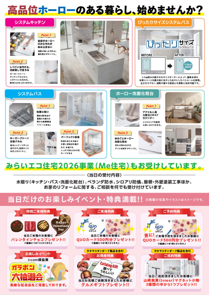 【2026年2月】タカラスタンダード川越ショールームにて展示・相談会を行います