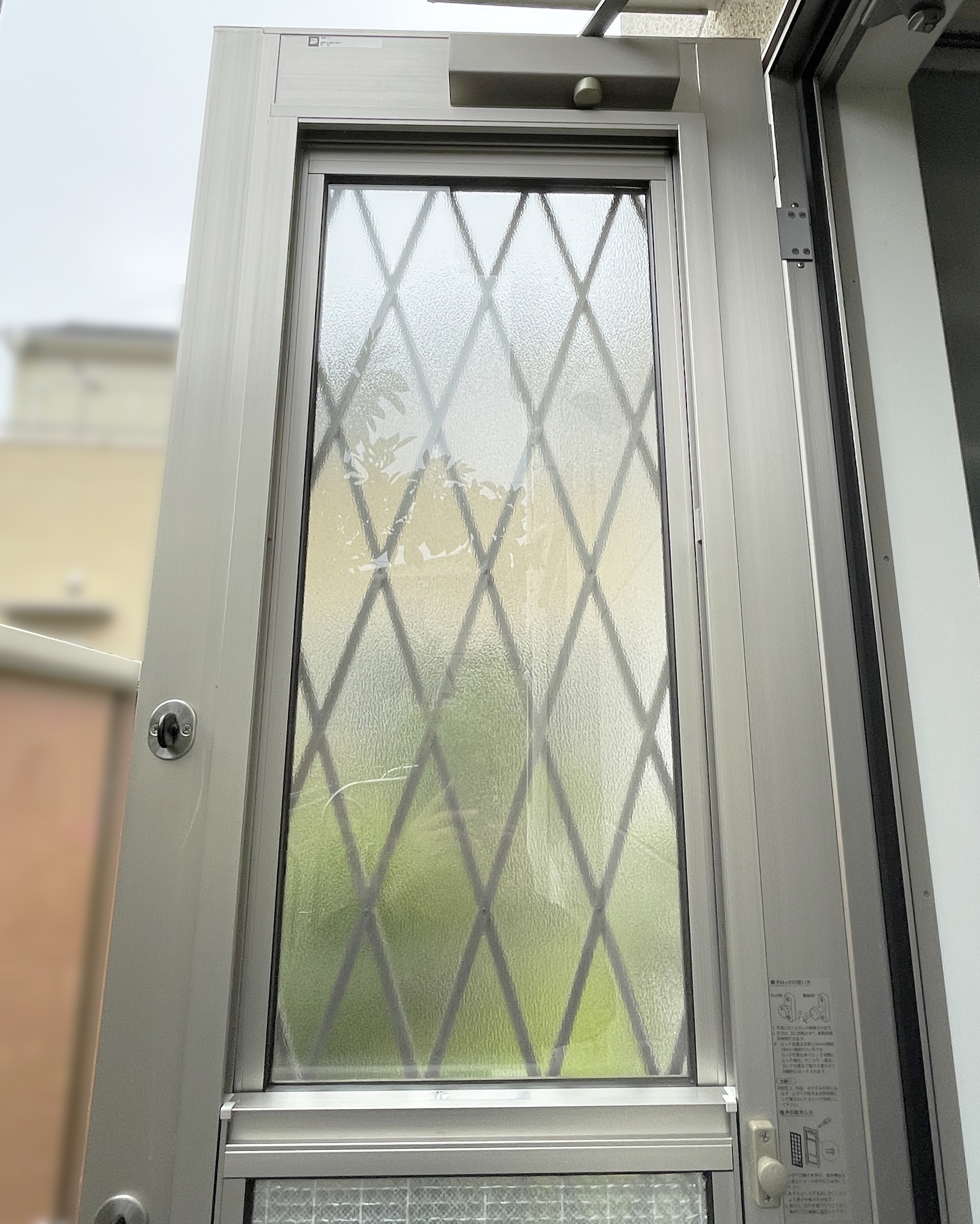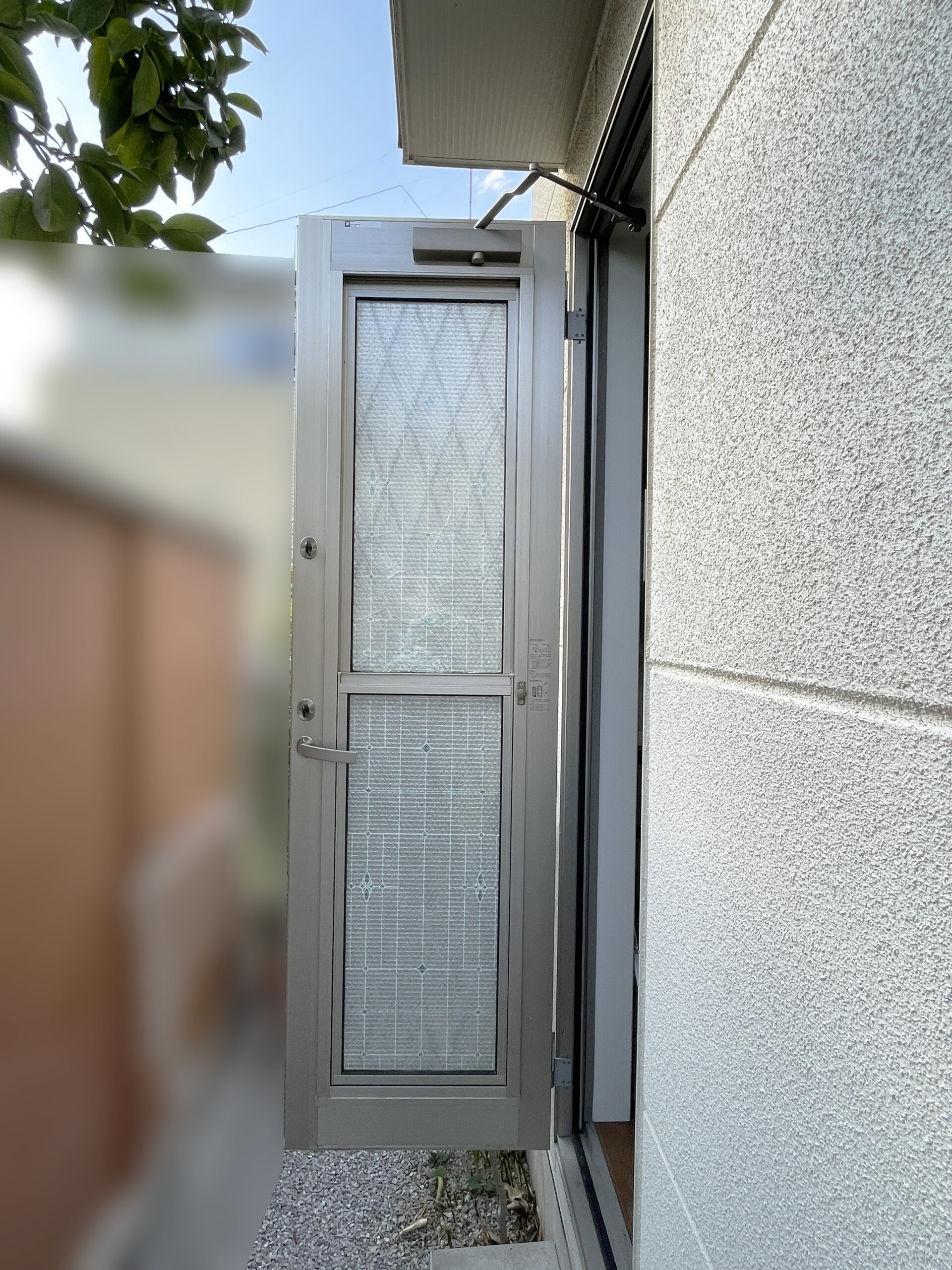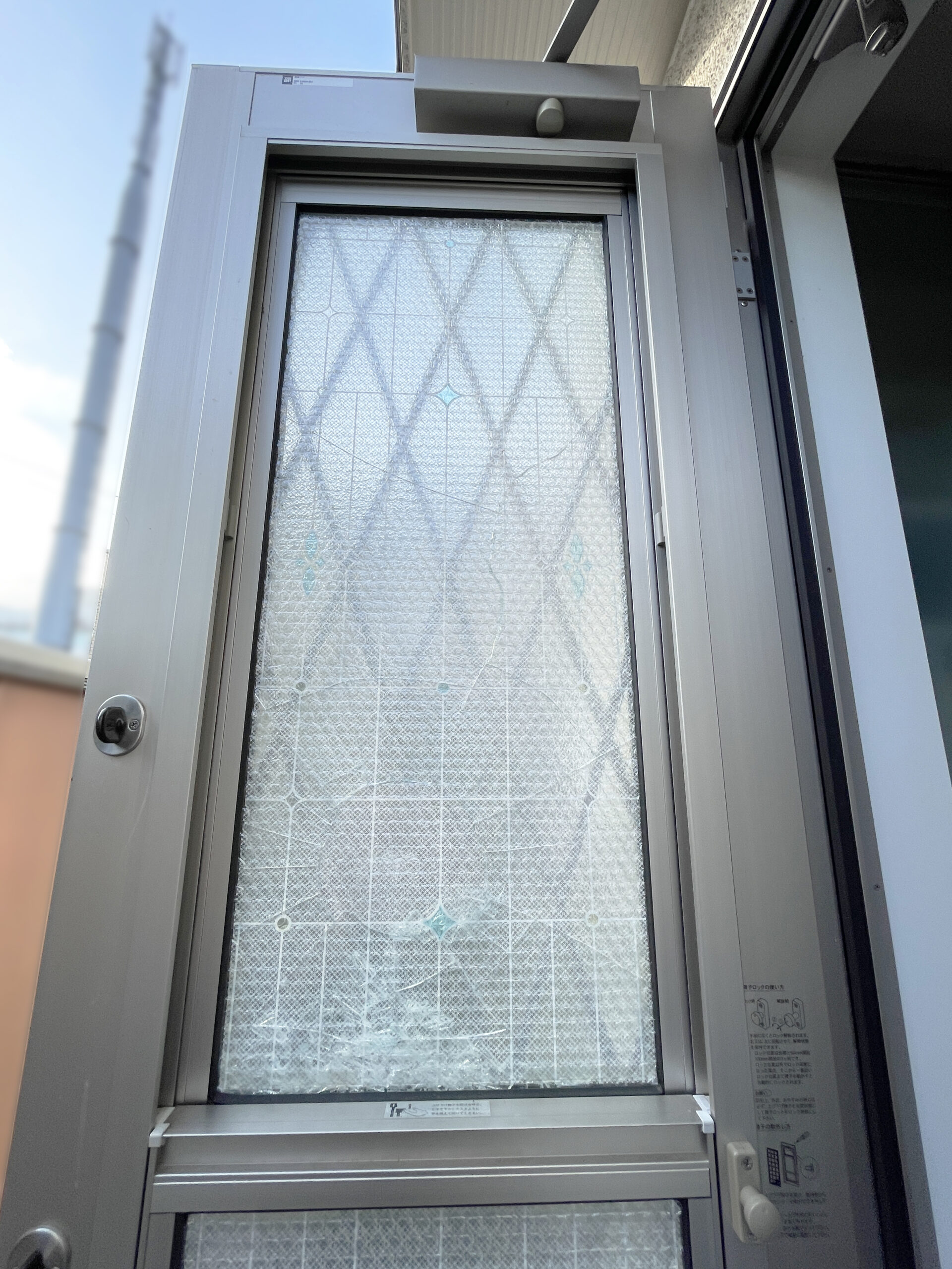 勝手口ドアの割れたガラスを交換するリフォームを行いました。